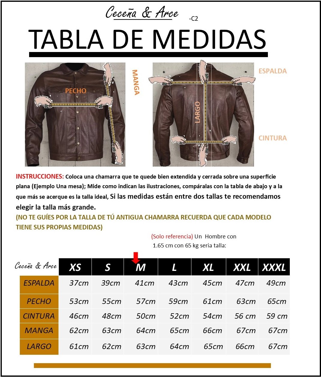 NO TE GUÍES POR LA TALLA DE TÚ ANTIGUA CHAMARRA RECUERDA QUE CADA MODELO TIENE SUS PROPIAS MEDIDAS