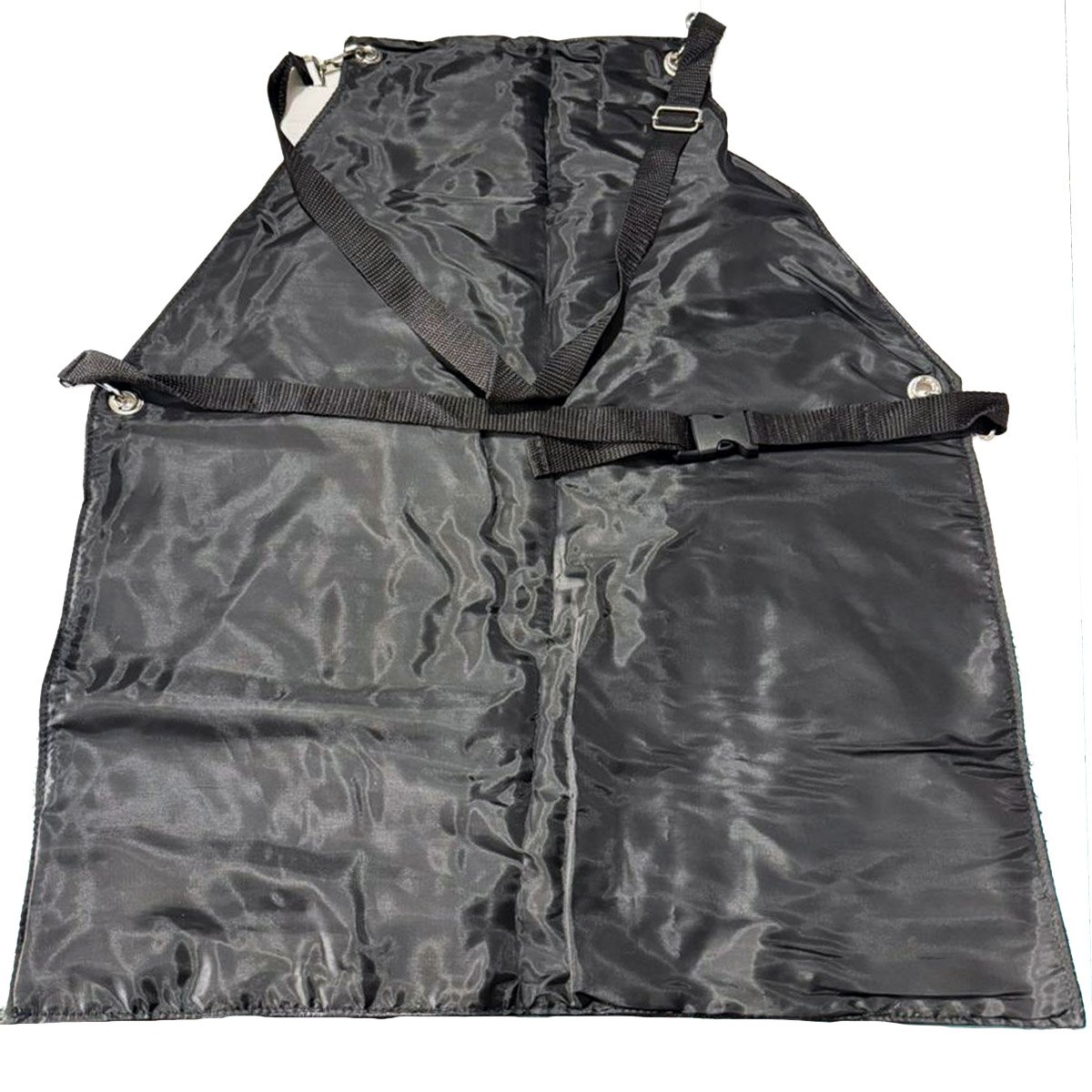 El mandil incluye broches de plástico y cintas ajustables de poliester